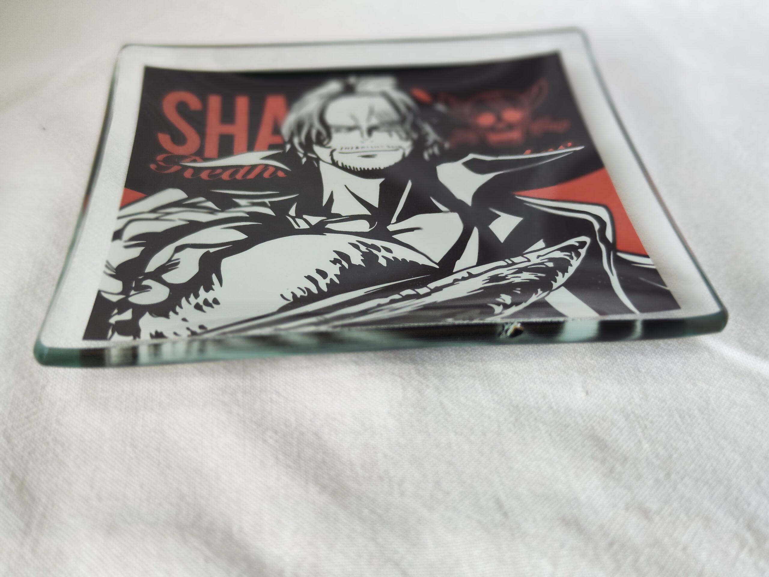 Ajoutez une touche d’élégance et d’originalité à votre collection avec cette superbe assiette en verre décoratif inspirée par l’univers du manga One Piece. Ce modèle met à l’honneur le célèbre personnage Shanks le Roux, rendu avec un design dynamique en noir, blanc et touches de rouge, idéal pour les passionnés de culture japonaise et d’art manga.