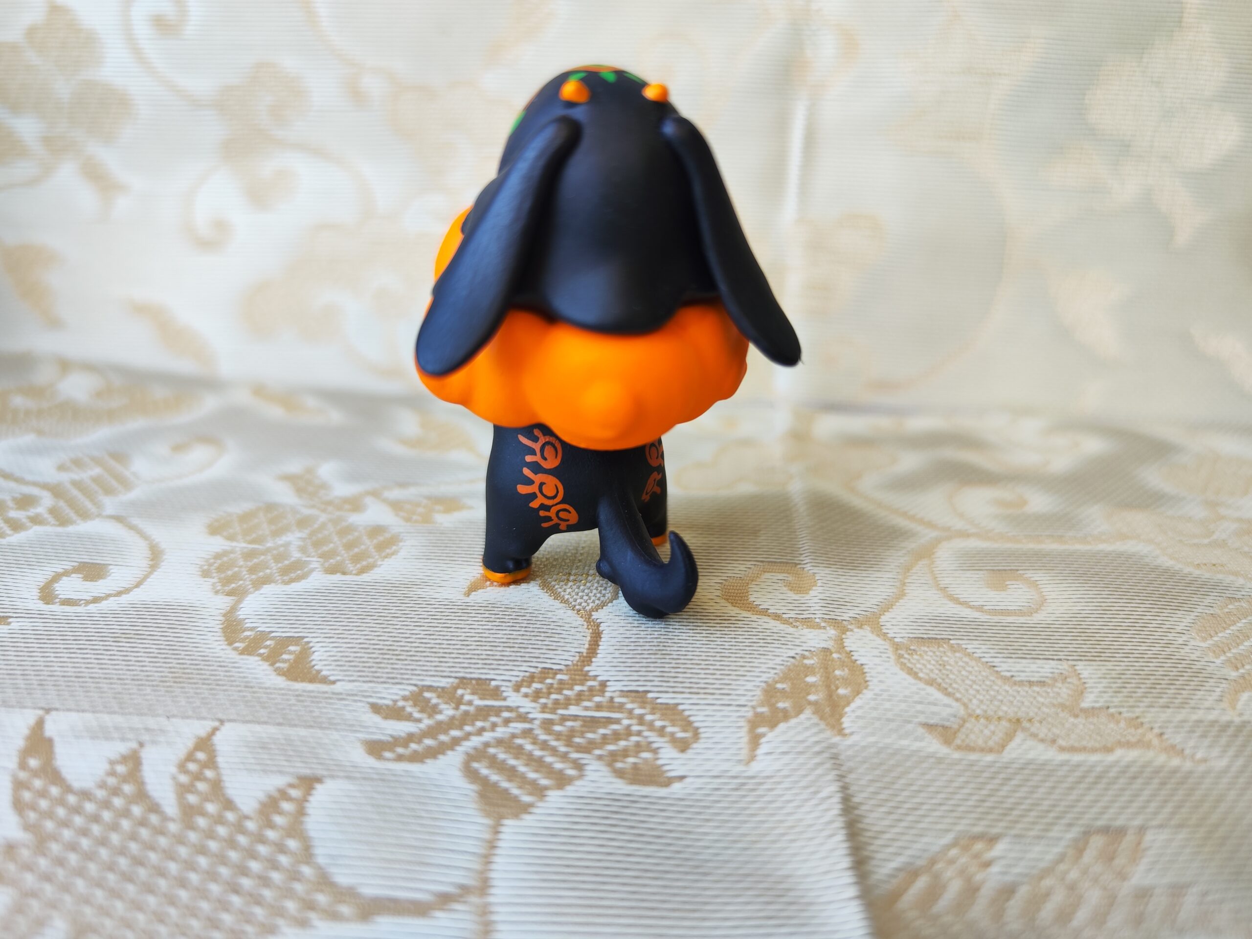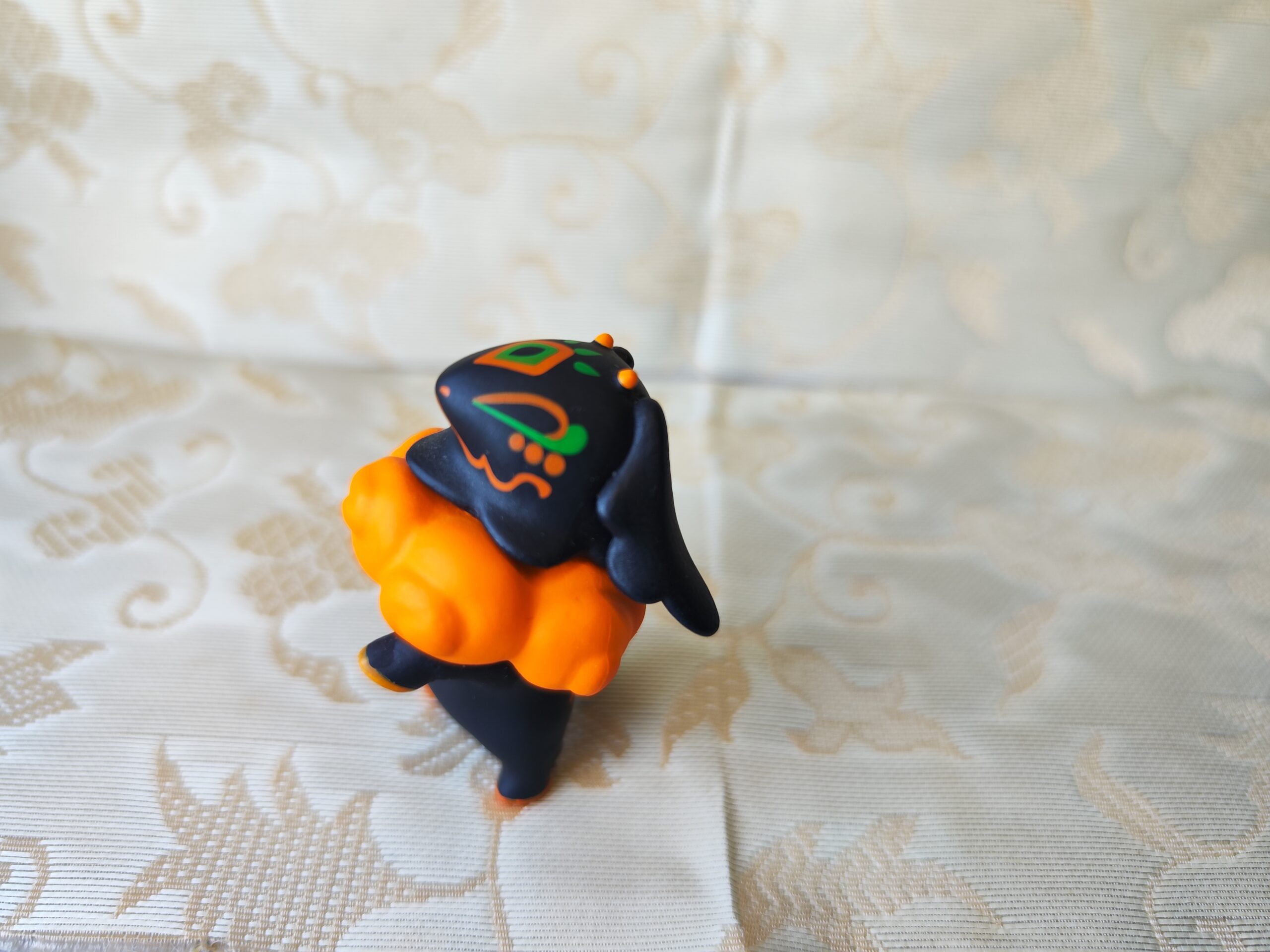 Figurine Gachapon – Animal Noir à Motifs sur Nuage Orange